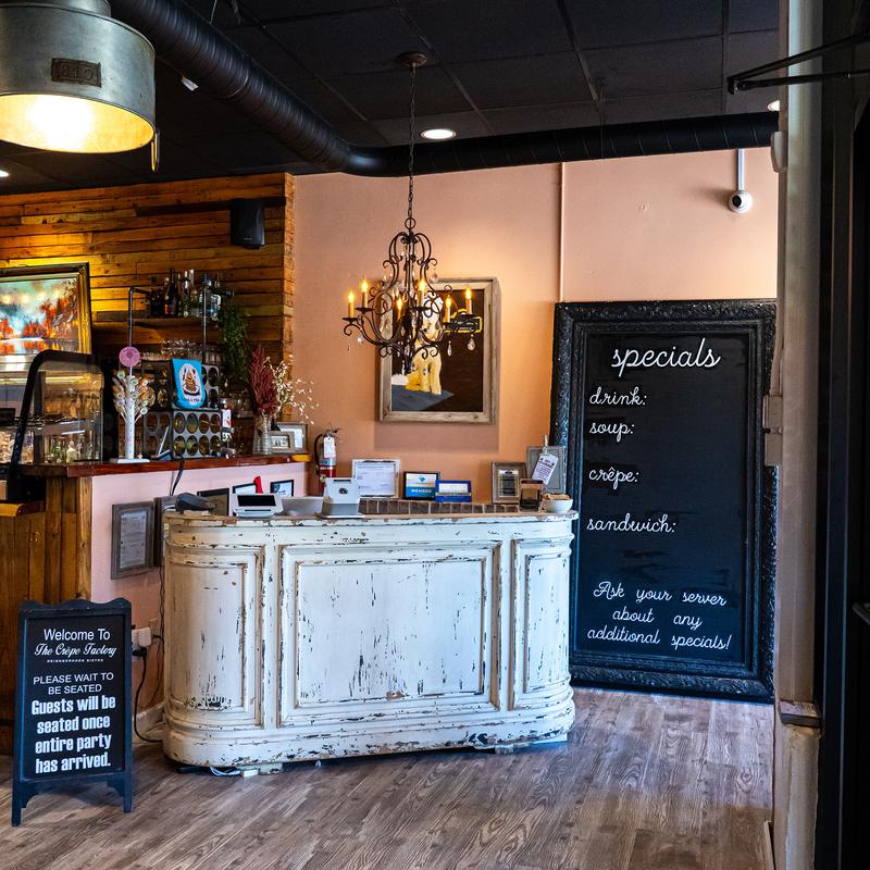 The Crêpe Factory® brings a taste of France to Upstate South Carolina with our sweet and savory crêpes. We first opened our doors in downtown Spartanburg's Morgan Square in 2016, and have been serving delicious crêpes, and so much more, ever since! There is something on our menu for everyone... young and old, the light eater or the hearty appetite! Come experience our interactive mural which captures Inman's past and present, and provides the perfect photo backdrop. Our industrial chic décor, original photos of Inman's landmarks, and stunning cedar bar provides a warm, relaxing and inviting environment. So, cozy up and stay a while.